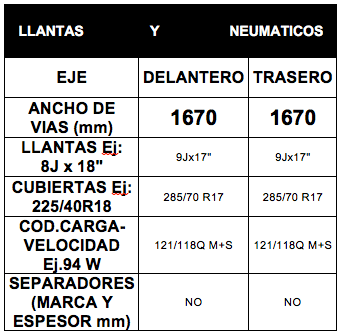 Información Específica Necesaria para realizar la homologación del 4×4: