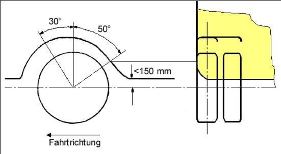 Las faldillas no son reforma. Es necesario llevarlas siempre y cuando se supere la altura en mas de 15 cm desde el centro de la rueda hasta la carrocería del vehiculo. Adjuntamos esquema